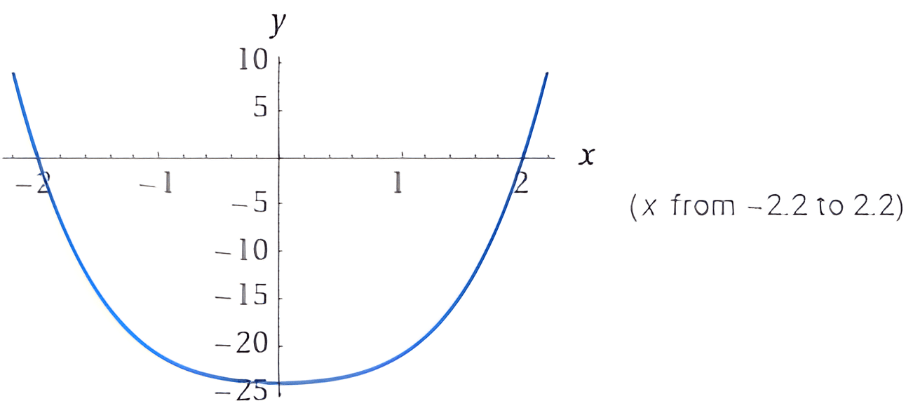 Let y=x2y = x^2. Then the polynomial becomes y2+2y24y^2 + 2y - 24