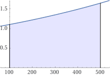 Evaluating the definite integral from 100 to 500, we get ∫100500eF×1×10−3dF=1000(e2/5−1)e1/10 step 4