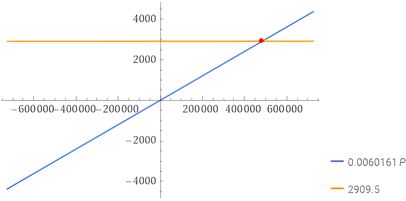 Solving for P using the given formula and values, we find that the periodic payment is P=483619