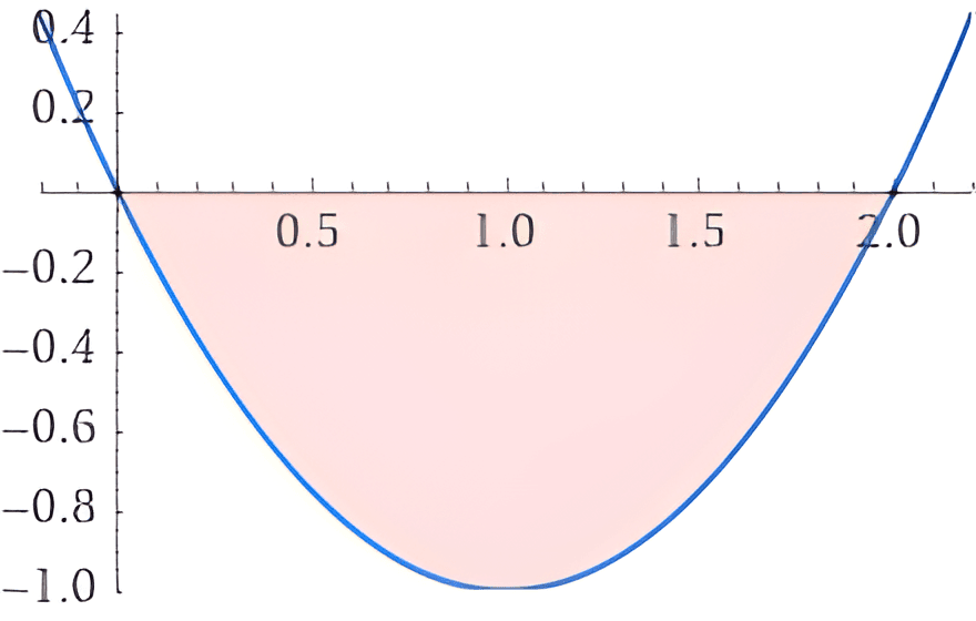 \int_{0}^{2} (2x - x^2) dx = \left[ x^2 - \frac{x^3}{3} \right]_{0}^{2}
