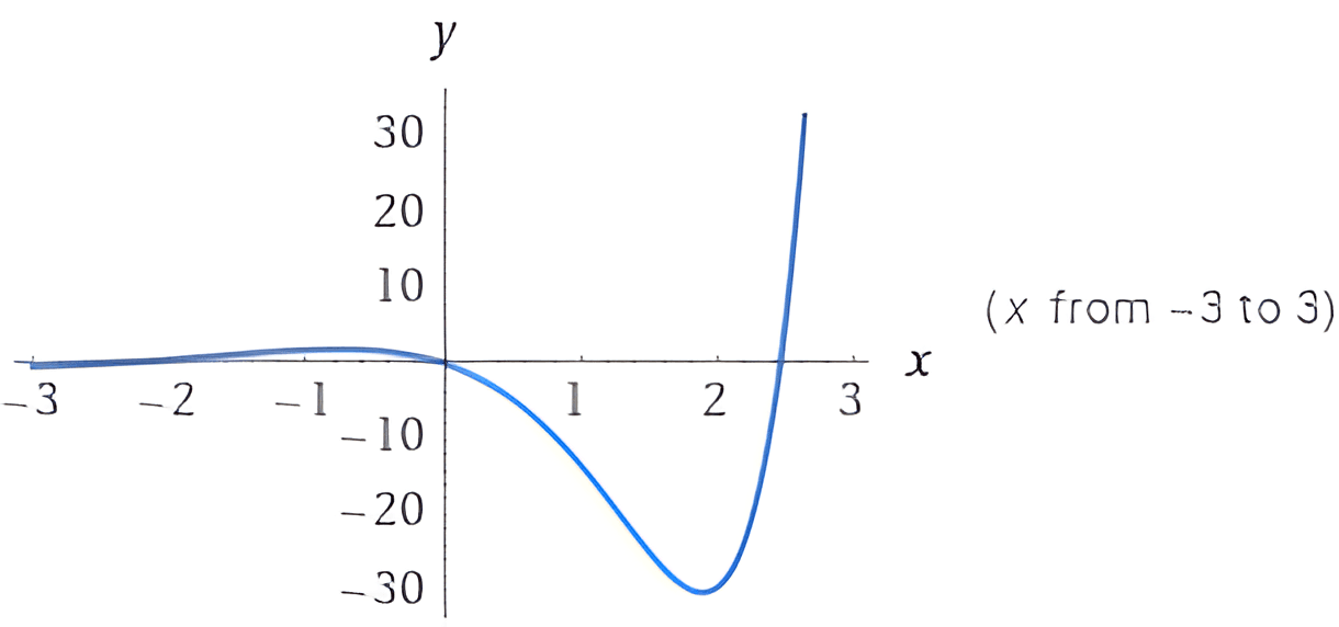 We start by differentiating the given function f(x)=ex(x3−3x2)