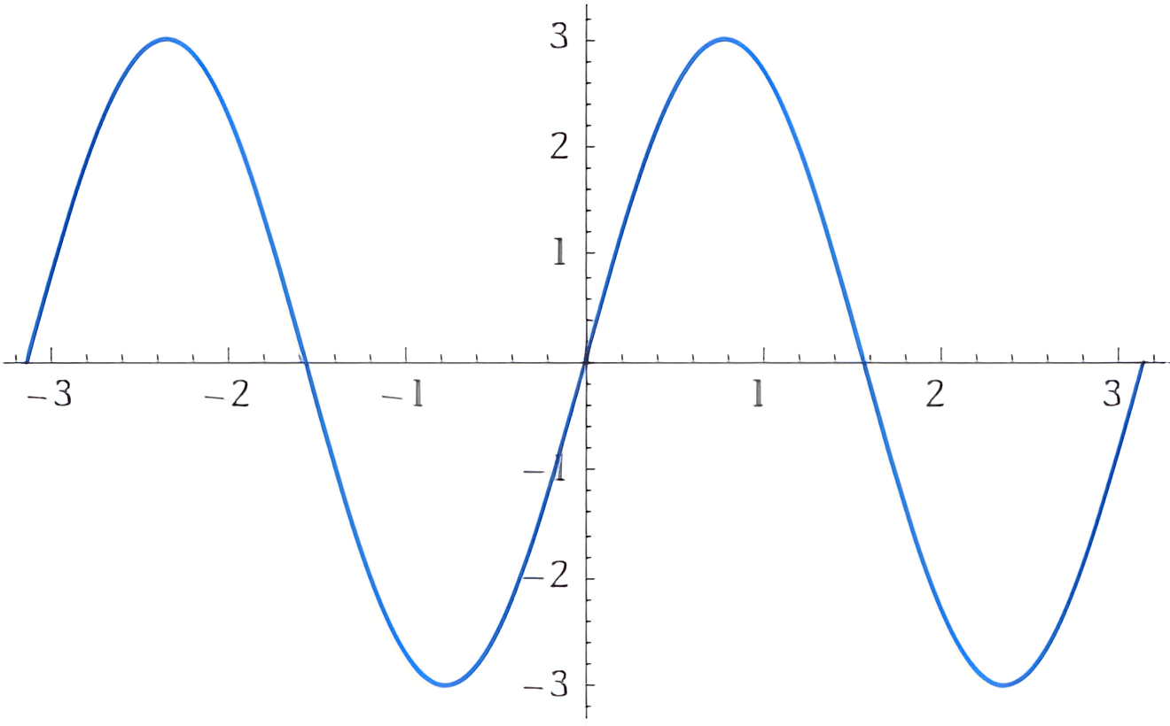 The graph of f(x)=3sin(2x) for one full cycle is a sine wave with an amplitude of 3, a period of π, and no phase shift. Key Concept