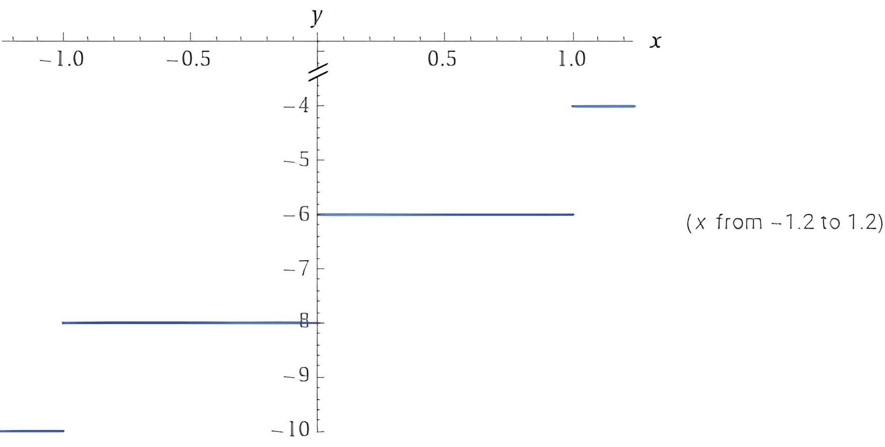 Substitute x=−14 into the function: f(−14)=−1.5[[0.75(−14)−1.9]]