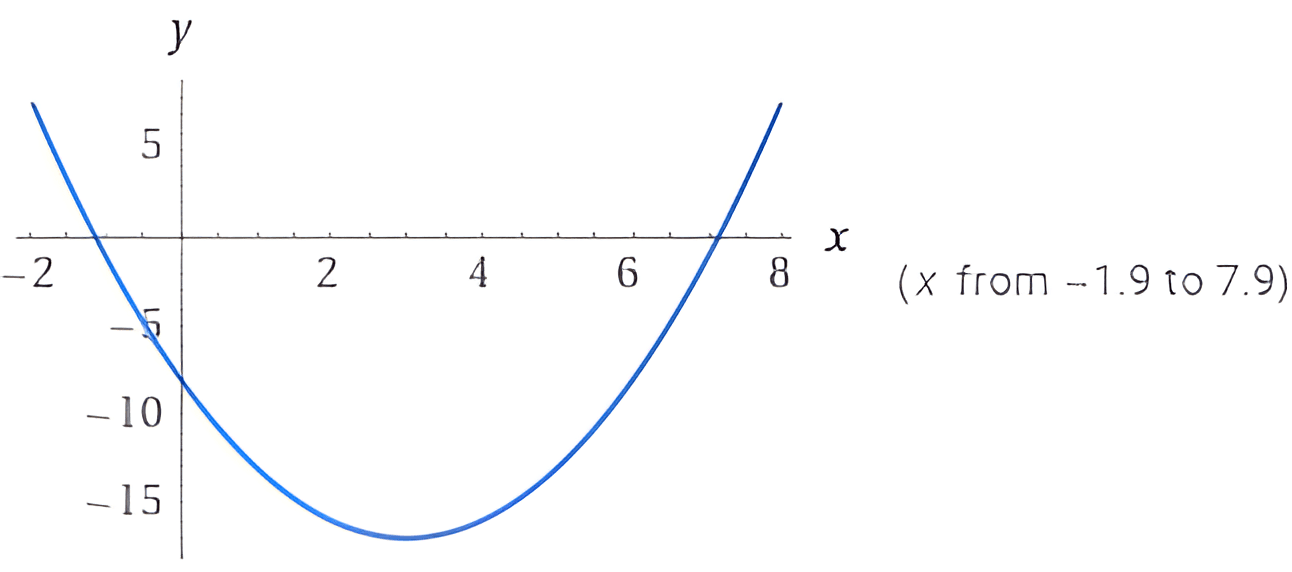 We add and subtract this square inside the expression to maintain equality, getting y=(x2−6x+9)−9−8