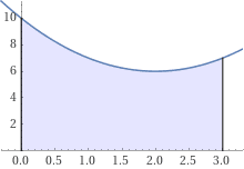 The definite integral of the function y=x2−4x+10 from x=0 to x=3 is given by ∫03(x2−4x+10)dx