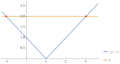 The locus of a complex number with a fixed distance from a point is a circle centered at that point with the given radius.