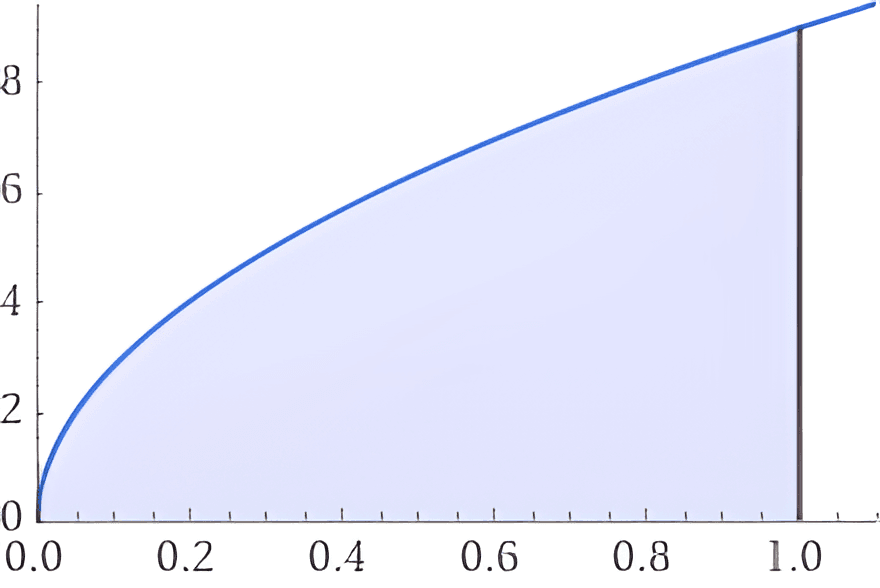 Evaluating the integral: V=π[29x2]01=π(29(1)2−0)=29π