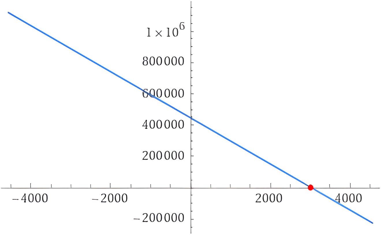 Solve for bb: b=3000001.488863146.65893037.35b = \frac{300000 \cdot 1.488863}{146.6589} \approx 3037.35