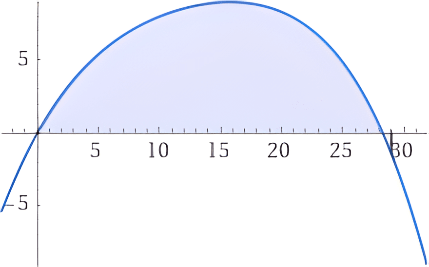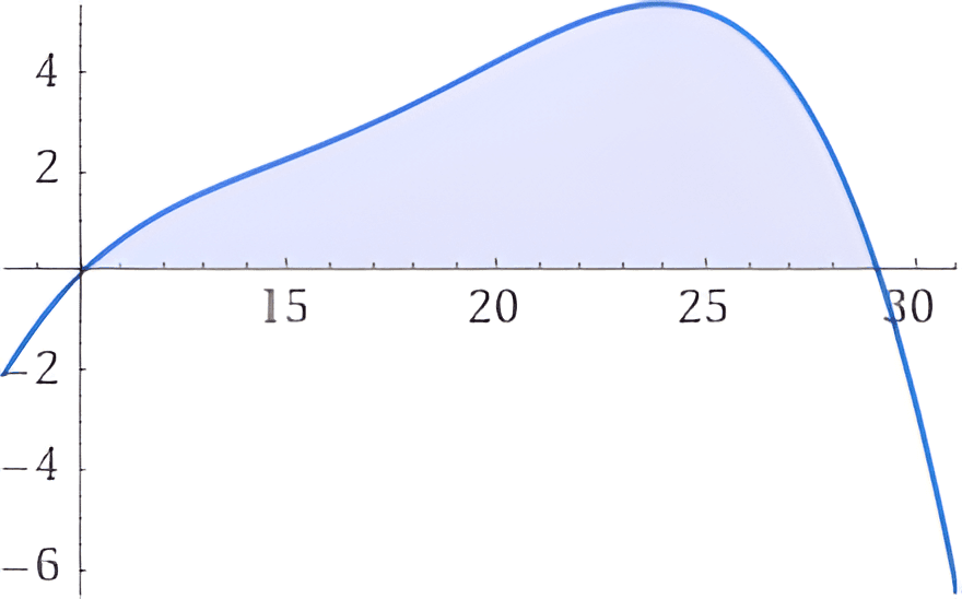 The area under the curve from x=0 to x=29 is approximately 178.897